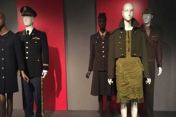 The might of the military is communicated through an authentic WWII US Army Corps uniform from 1945 made of drab cotton and stiff wool with gunmetal fastenings, but an equally powerful military message is conveyed through a Burberry runway ensemble from Fall 2010 of frothy green ruffled tulle and cropped olive wool tailoring. Of course, the circumstances of the wearers couldn’t be more opposing. The authority associated with army braiding, patches, buttons, medals, insignia, stripes, epaulettes become mere ingredients in the hands of fashion designers to mix into new recipes. Similarly the fluctuating power play associated with corsets, lingerie, thigh-high leather boots might communicate pleasure to one while another views them as symbols of sexual exploitation.