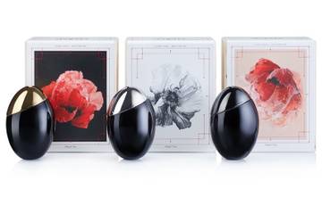 The collection is also inspired by the brand’s storytelling nature with each candle encased in an egg-shaped black lacquered glass with a silver, dark or gold metal lid. The glass is protected by a mycelium shell and presented in a wooden crate.