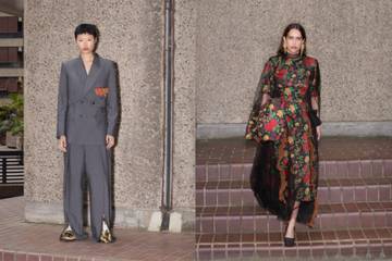 The women’s pieces are set to include classic tailoring in navy, grey, and black features dashes of eccentricity, including bead-embellished pockets or silk scarf cape, detailing. The dresses and skirts will feature bold floral and gingham prints paired cleverly with deconstructed knitwear.