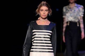 Hilfiger, dressed in a captain-style navy jacket, made a victory lap at the end of the show for which he created a special "InstaPit" for the Instagram creators transforming the way fashion is consumed. French navy allusions featured prominently on captain-style jackets and coats, embellished with braiding, and there was a sprinkling of 1970s styles and shapes thrown in, such as high-waisted bell bottoms.