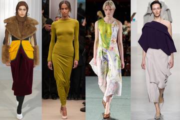 Moss green appeared in unexpectedly fluid interpretations this season, moving away from its usual utilitarian associations. Instead, designers applied the earthy shade to diaphanous and draped fabrics, giving it a softer, more sensual character. The color was worked into eveningwear silhouettes including Grecian-style gowns, wrapped-front blouses paired with skinny pants, and body-conscious knits.