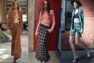 Several other designers used tweed in novel ways. Wes Gordon at Carolina Herrera showed a tweed mini skirt paired to a white blouse with black embroidery, and a dress with a flounced hem and a matching cropped jacket.