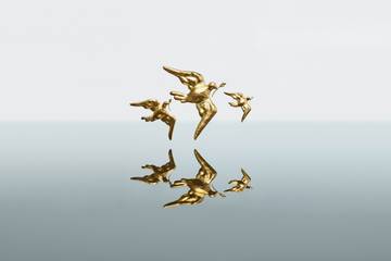 The Schiaparelli Dove brooch in hammered gold shows a dove carrying an olive branch, as a symbol of peace and hope, and will be available in three different sizes, from Schiaparelli, Bergdorf Goodman and Dover Street Markets.