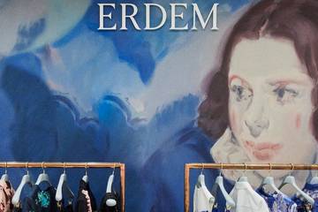 The space combines Erdem’s "language of poetic and modern femininity" with Donachie’s "dreamlike painterly style," featuring large-scale printed panels of Donachie’s expressive artwork, including reimagined portraits of Erdem Moralıoğlu’s mother.