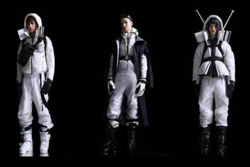 The Moncler Genius project is an initiative in which multiple designers create collections in collaboration with the brand, rather than the brand having one creative director working on all collections. Mandrino chose to use Dyneema composite fabrics to create his interpretation of the future of fashion, adopting variations of the fabric in black and white to blend skiwear, space suits and technology into one piece.