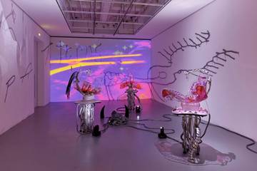 Highlights from the exhibition include sculptures by Estonian artist Katja Novitska examining the relationship between technology and biology, as well as video work by Jakob Kudsk that proposes a future where data and biology fluidly connect.